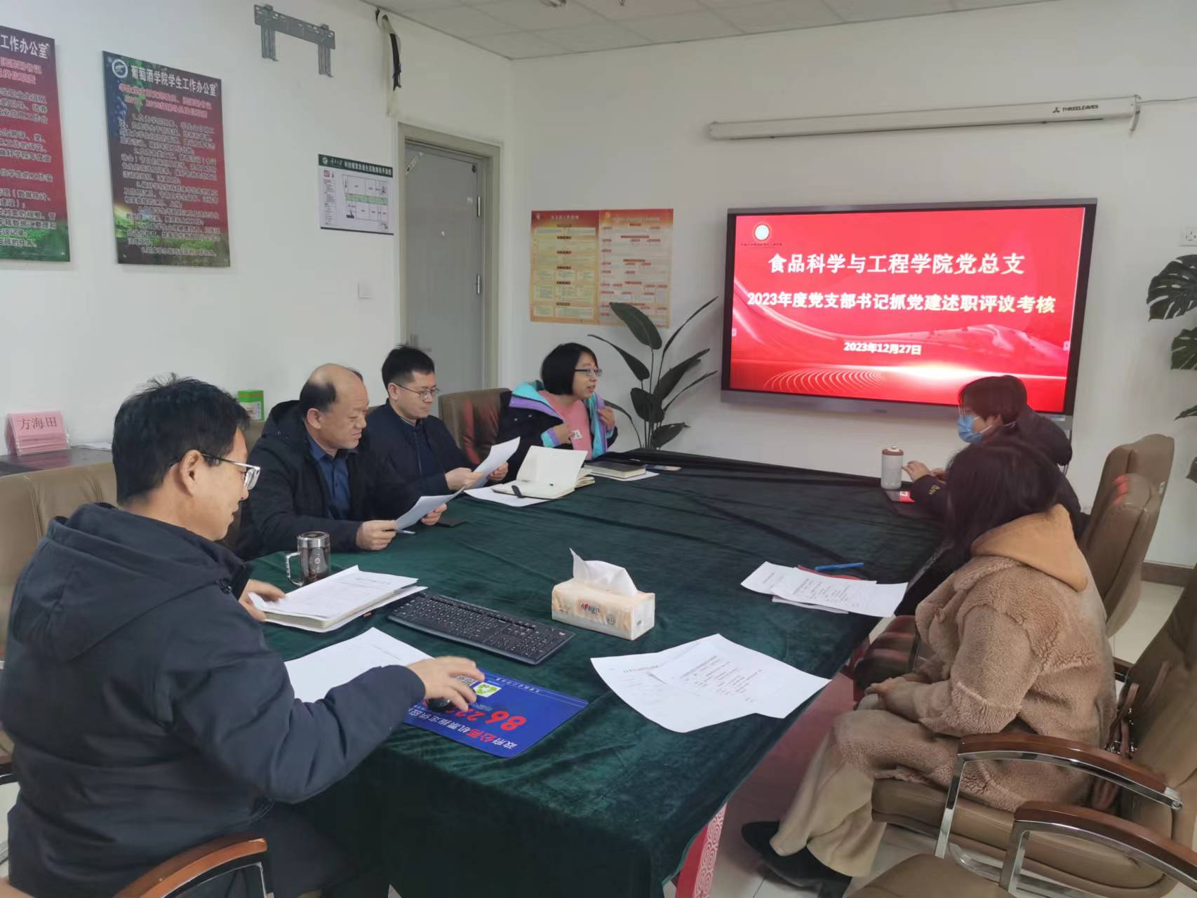 党总支在科技楼B413会议室召开党支部书记述职评议大会。学院副书记李文华,副院长王松磊,食品科学党支部书记潘琳,食品工程党支部书记曹松敏,以及党员教师代表范艳丽、章中、李海峰出席本次会议,此次述职采取“一述一评”方式进行。