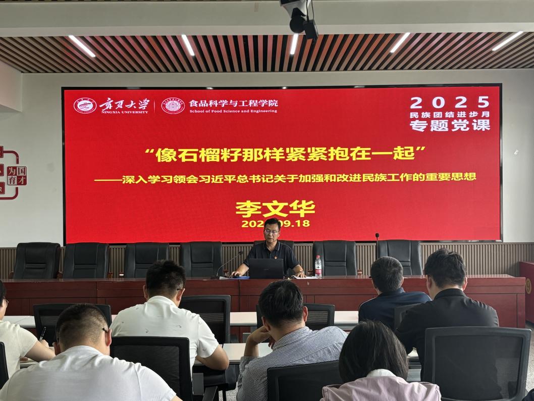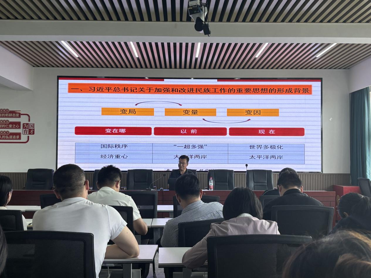 在明远楼512会议室举办民族团结进步专题党课,学院党总支书记李文华作专题辅导,全院教师参加学习。