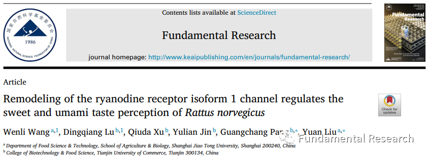 文章来源:Fundamental Research | 上海交通大学刘源教授等:RYR1通道—调控甜鲜物质感知信号的新通道 (qq.com)