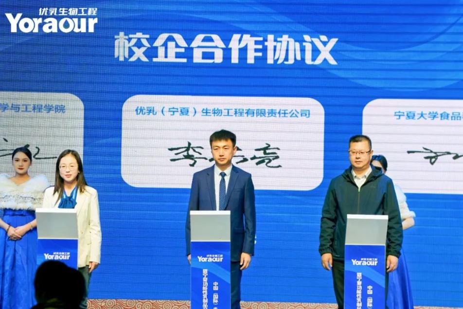 和优乳(宁夏)生物工程有限责任公司签订了校企合作协议,学院剧柠副教授、魏晓博博士、张仲雄博士、郭帅博士和洪峰博士参加了签约仪式。此次校企合作协议的签订,不仅为院和优乳公司提供了合作契机,也为宁夏奶产业和灵武长枣产业的高质量融合发展注入了新的动力。