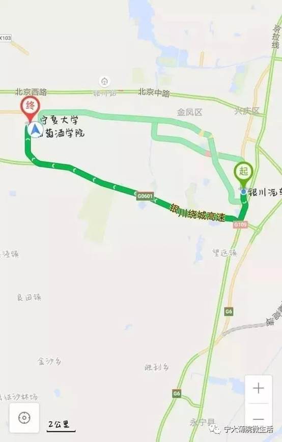 银川汽车站→清河南街→京拉线→银川绕城高速→文昌南街→开元东路→成人漫画 葡萄酒学院