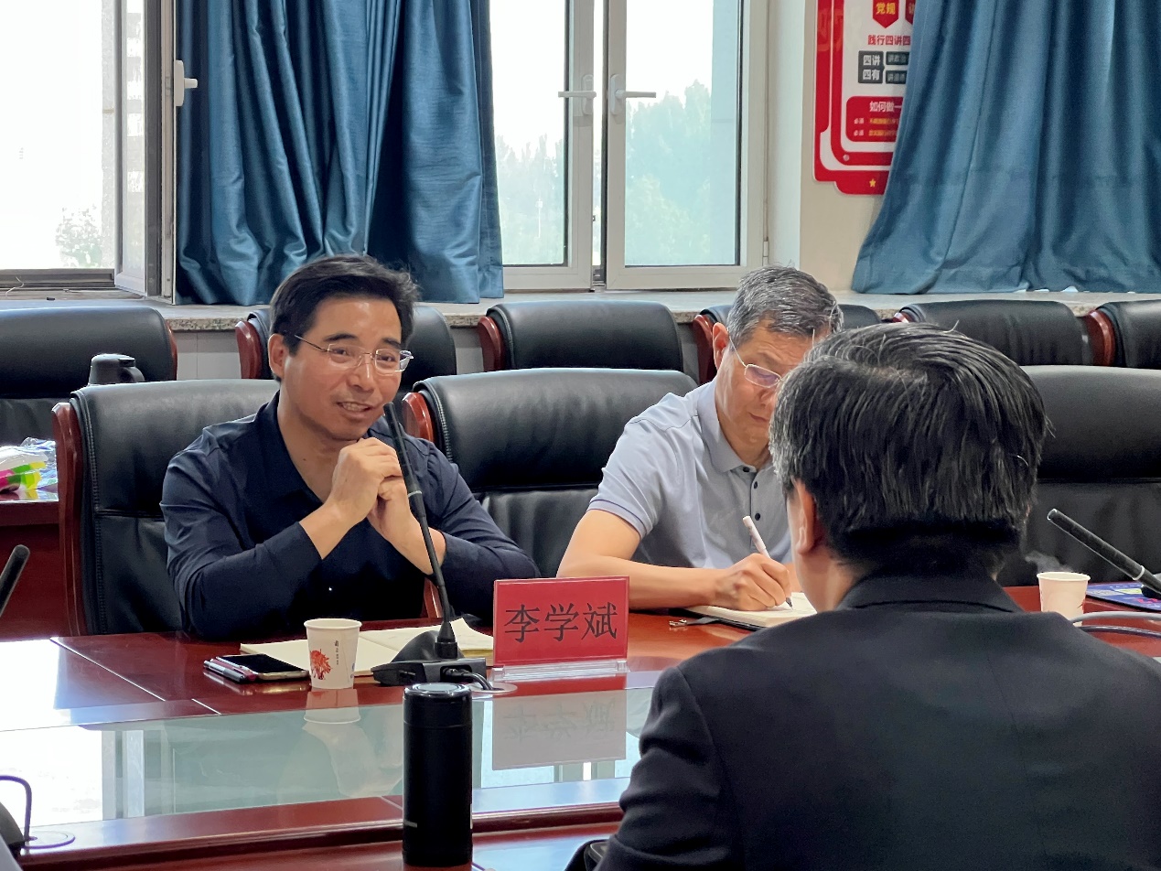 刘源院长认真听取意见后,对学院学科建设、师资队伍、科研成果等基本情况以及学院目前的优势、短板及下一步工作向李学斌校长做了详细汇报。并表示在后续学院发展中将直面挑战,强抓机遇,狠抓落实。