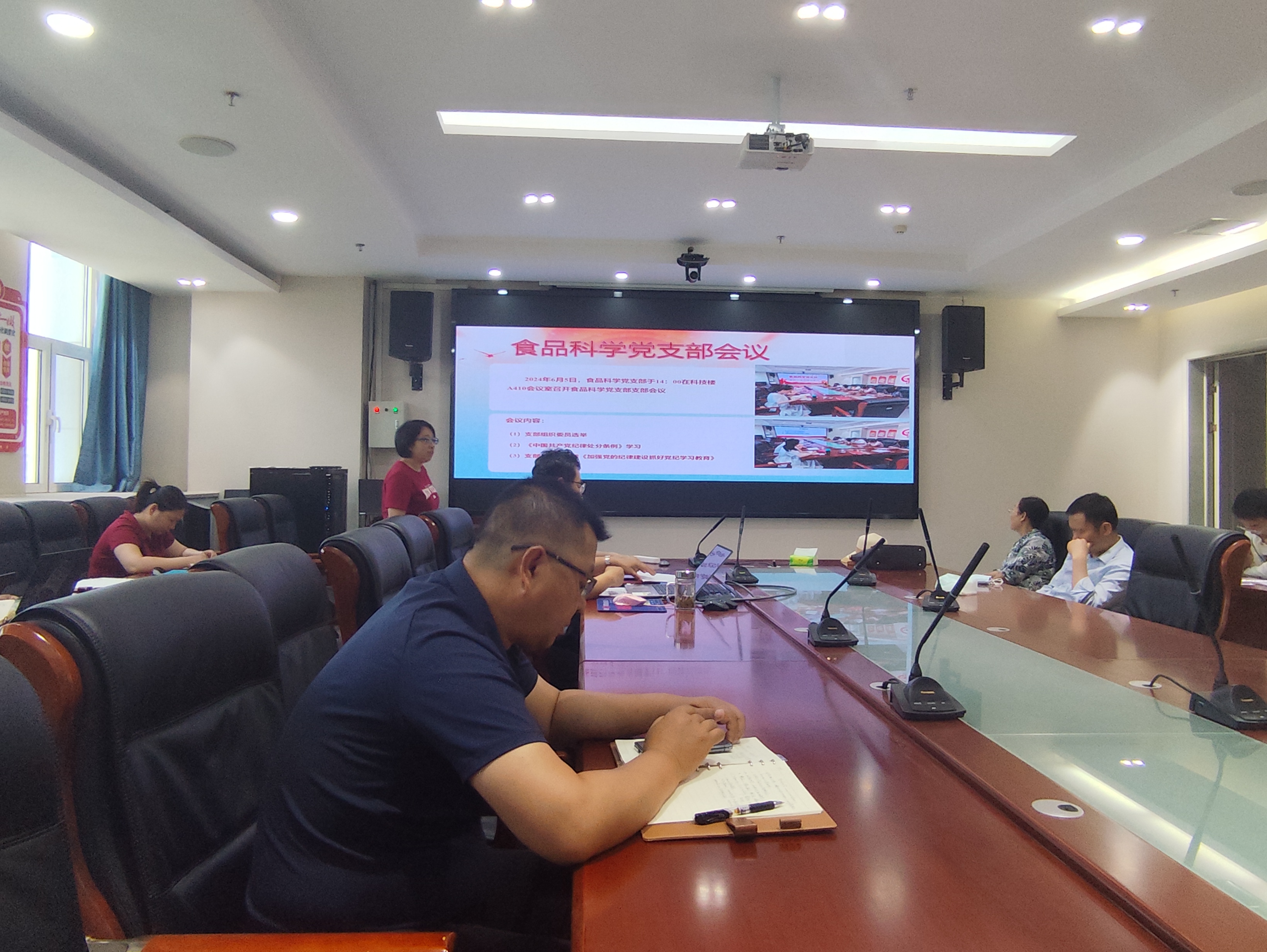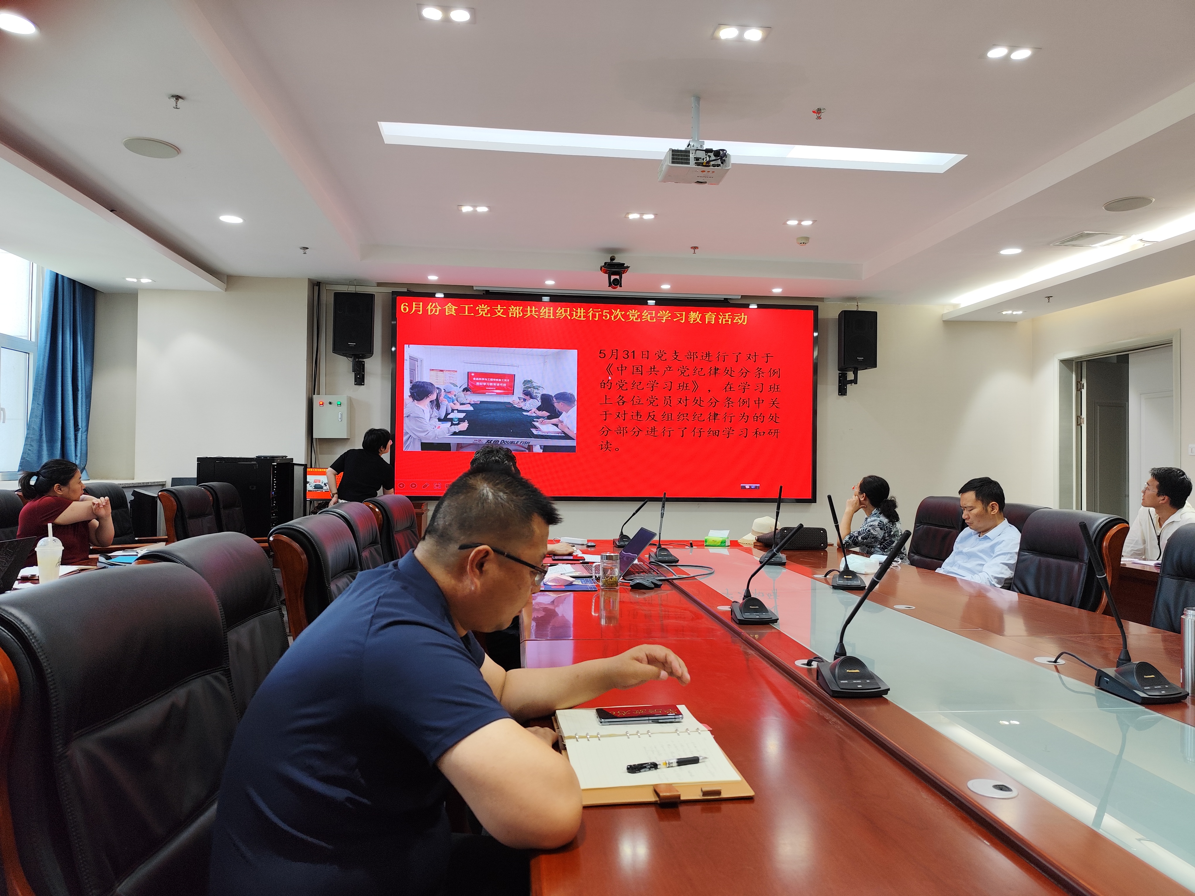 随后,学院党支部书记潘琳和曹松敏分别对党支部近期工作进行了汇报,全面梳理和总结了2个基层党支部党纪学习教育和“三会一课”、主题党日活动的开展情况。