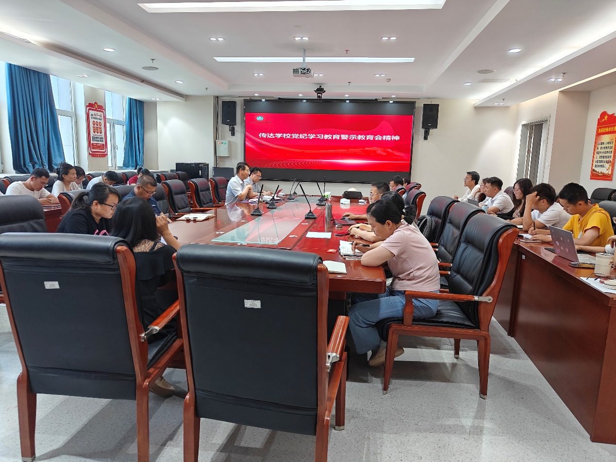 接着,李文华传达了学校党纪学习教育警示教育会有关内容,并结合近年来发生的高校违纪违法典型案例,深入分析和解读了相关法律法规的和党纪政务处分条例。他强调,广大教师要认真学习和严格遵守党纪国法与校纪校规,不断提高法治意识和纪律观念,时刻保持清醒头脑,做到警钟长鸣,严守道德底线。
