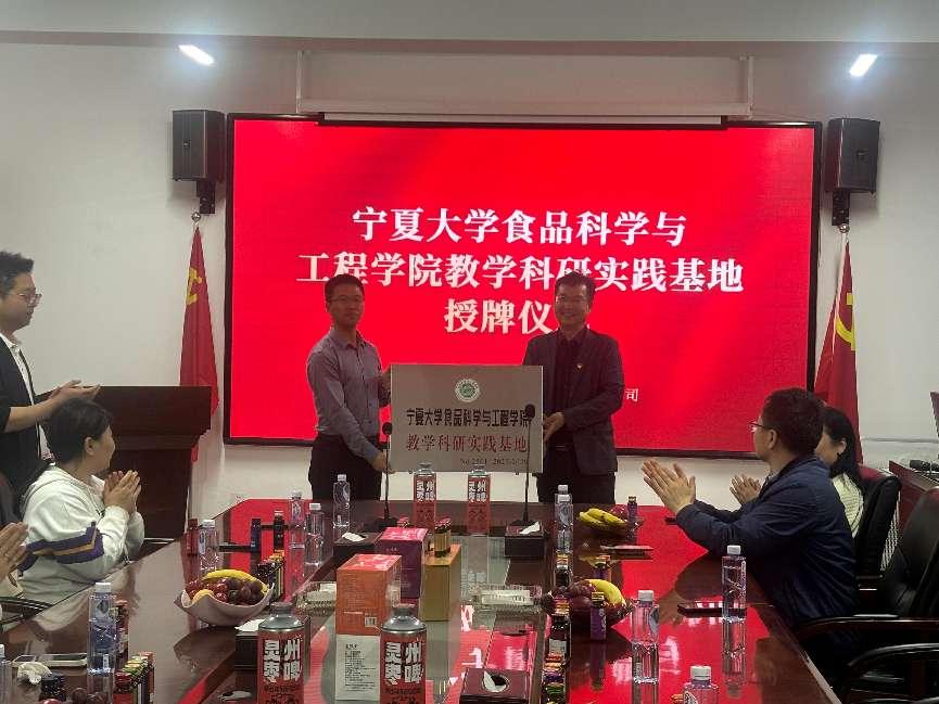 科技人才助力产业新质生产力发展、真正把绿水青山变成金山银山的迫切愿望。学院党总支书记李文华表示,白芨滩的生态治理经验为食品学科发展提供了重要启示:“沙区特色农产品的深度开发、功能性食品研发与生态价值转化,是未来双方合作的重点方向。”座谈交流中,学院方海田副院长、李亚蕾教授、章中教授、范艳丽教授分别从微生物发酵、食品加工技术、无损检测、营养成分提取等角度,提出将沙区资源转化为高附加值产品的具体思路。双方还围绕沙区药食同源植物开发、生态产业链延伸等议题展开讨论,并签订《产学研战略合作框架协议》,约定在科研攻关、学生实践基地建设、成果推广等方面开展深度合作。