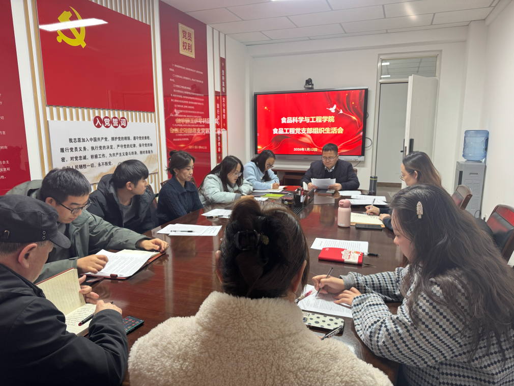 党总支统一部署,2026年1月12日,食品工程党支部在明远楼515会议室召开2025年度组织生活会,并组织开展民主评议党员。本次会议由党支部书记曹松敏同志主持。